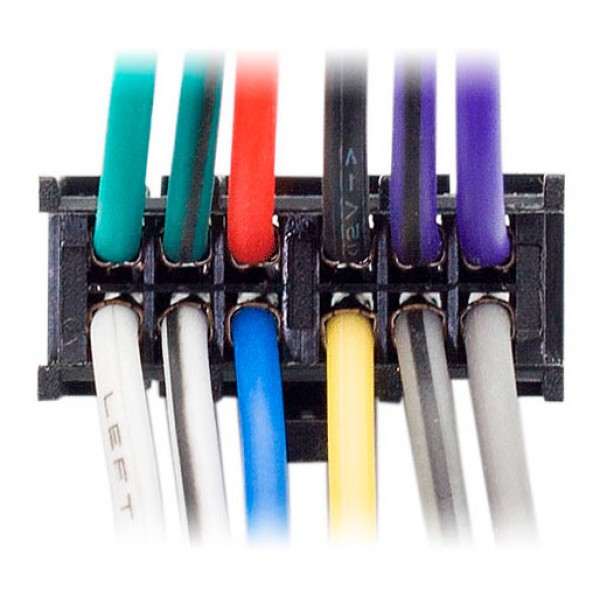 Conector 12 pines (hembra) <---> CARAV <---> ISO (macho) alimentación + acústica