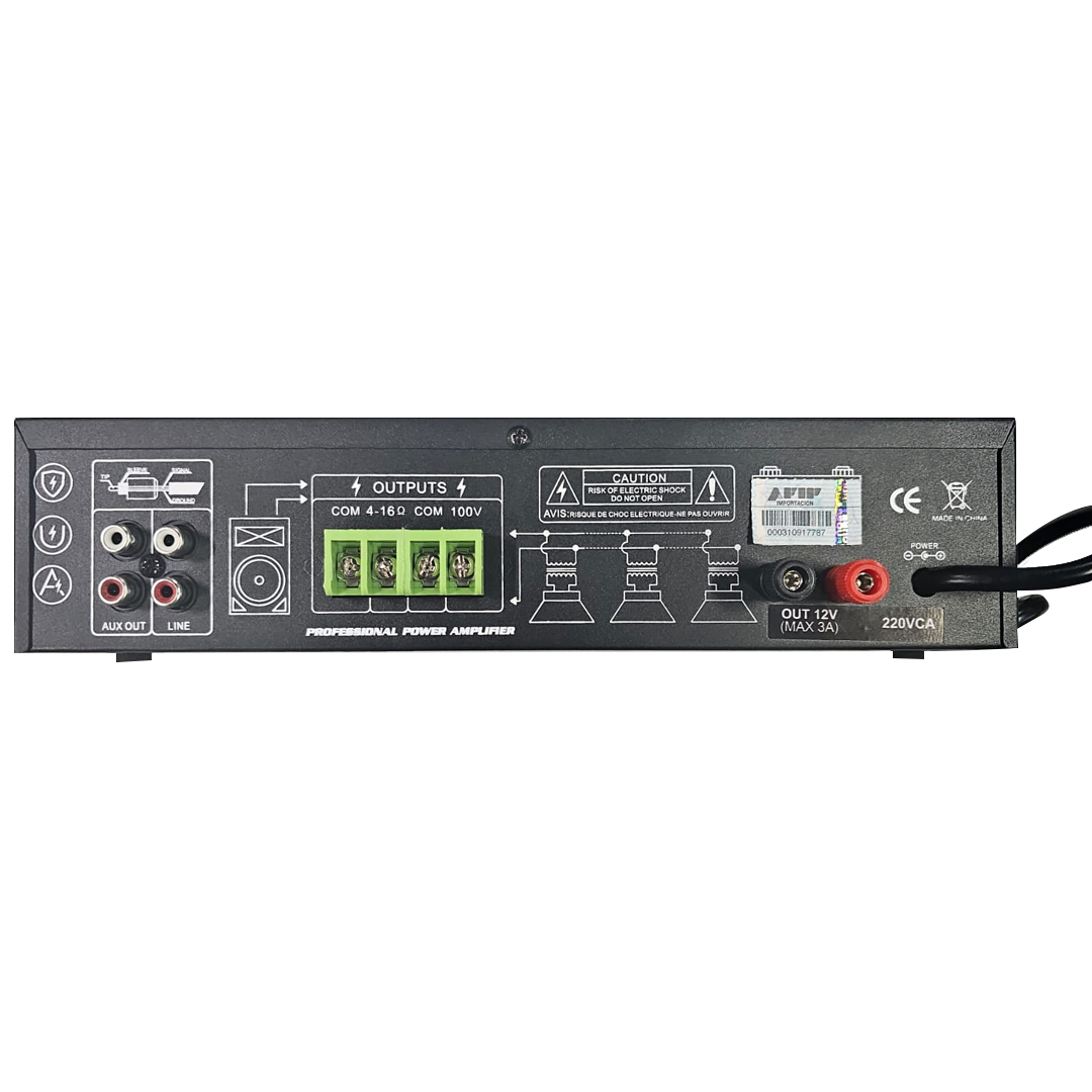 • Salida de parlantes 8 - 16 ohms / 100V (transformador incorporado)