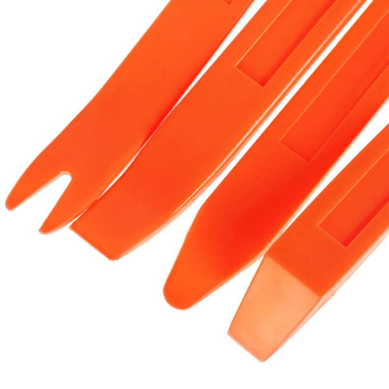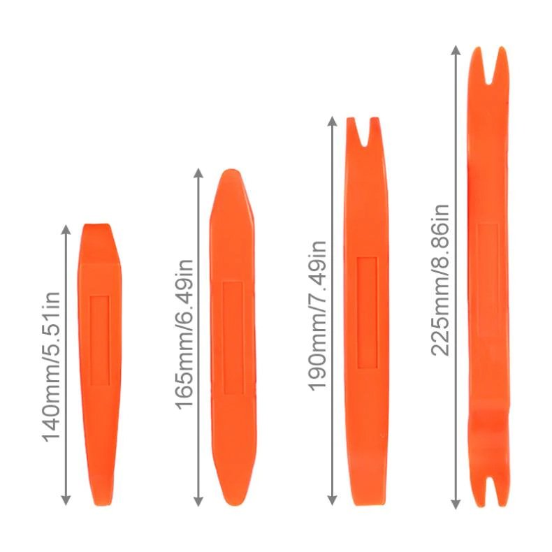 Kit completo de 4 herramientas para el desmontaje de revestimientos de puertas/paneles. El producto indispensable para realizar una instalación de audio de coche de alta gama, sin renunciar a la estática de las puertas. Acabado sobrio en compuesto inyectado, superficie de apoyo muy resistente que permite el montaje y desmontaje de revestimientos de puerta simples o intensivos.