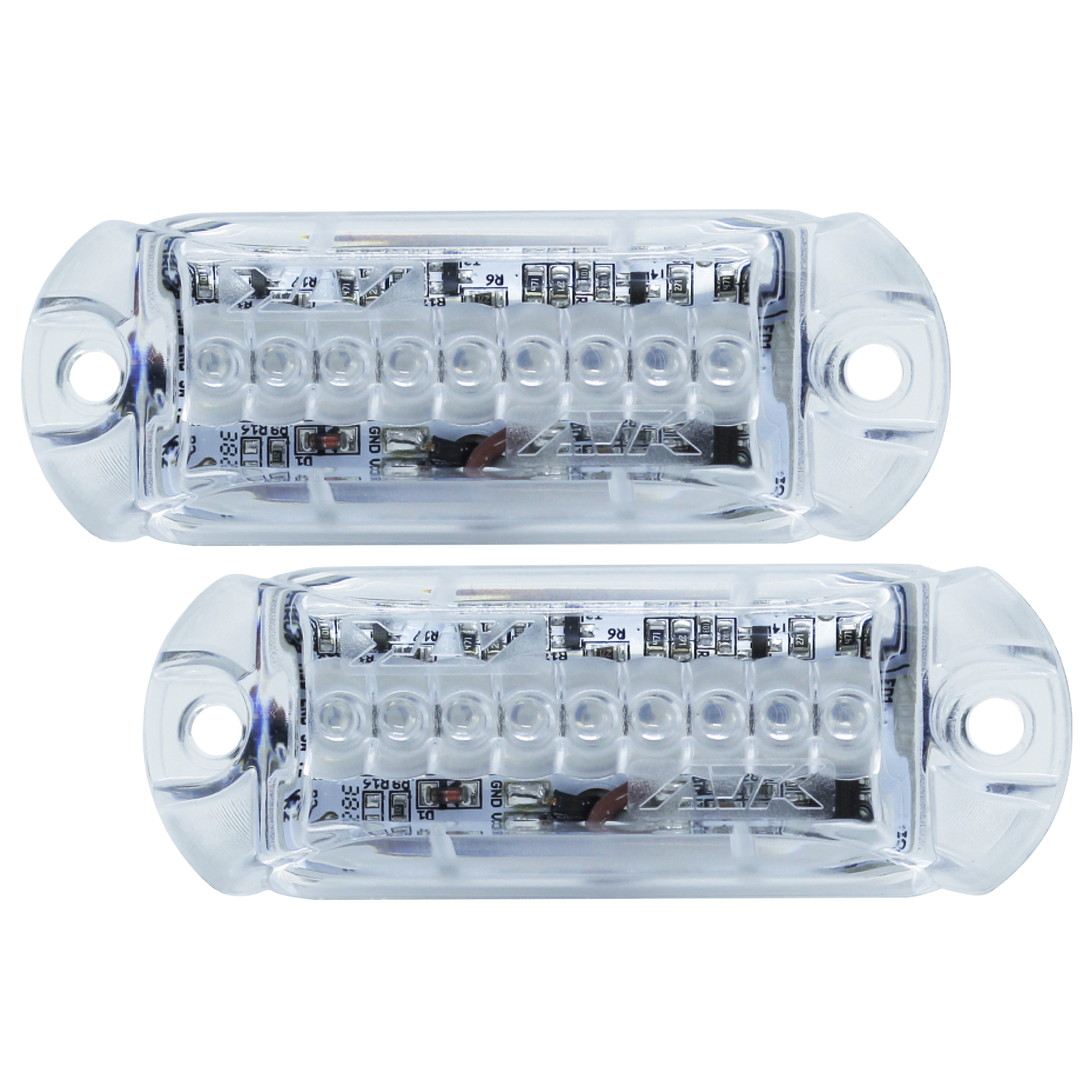 El kit viene con 2 faros LED de 3W de alta potencia lumínica y bajo consumo. Cada faro tiene 9 LED. El frontal es direccionable en la norma 2811. Su construcción es resistente en policarbonato y posee 1 entrada y 1 salida de señal.